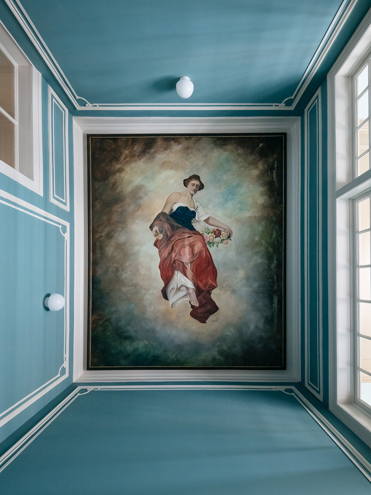 L’edificio rosa aveva una facciata bella e razionale, ma il vero tesoro era all’interno. Un interno esotico con dettagli come il dipinto di una sirena nel soffitto di un bagno, una moltitudine di mosaici a motivi, porte in legno intagliato e un grande lavandino in pietra.