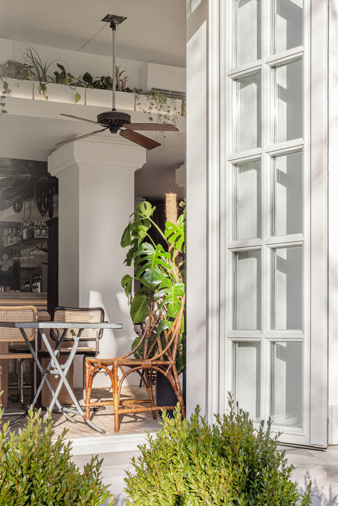 Volevamo creare l’atmosfera di un cortile, dove ci si potesse nascondere dal cocente sole estivo. Ti ritroverai circondato da piante tropicali, legno naturale, argilla cotta, punti ristoro, ventilatori, rumori della cucina e conversazioni.