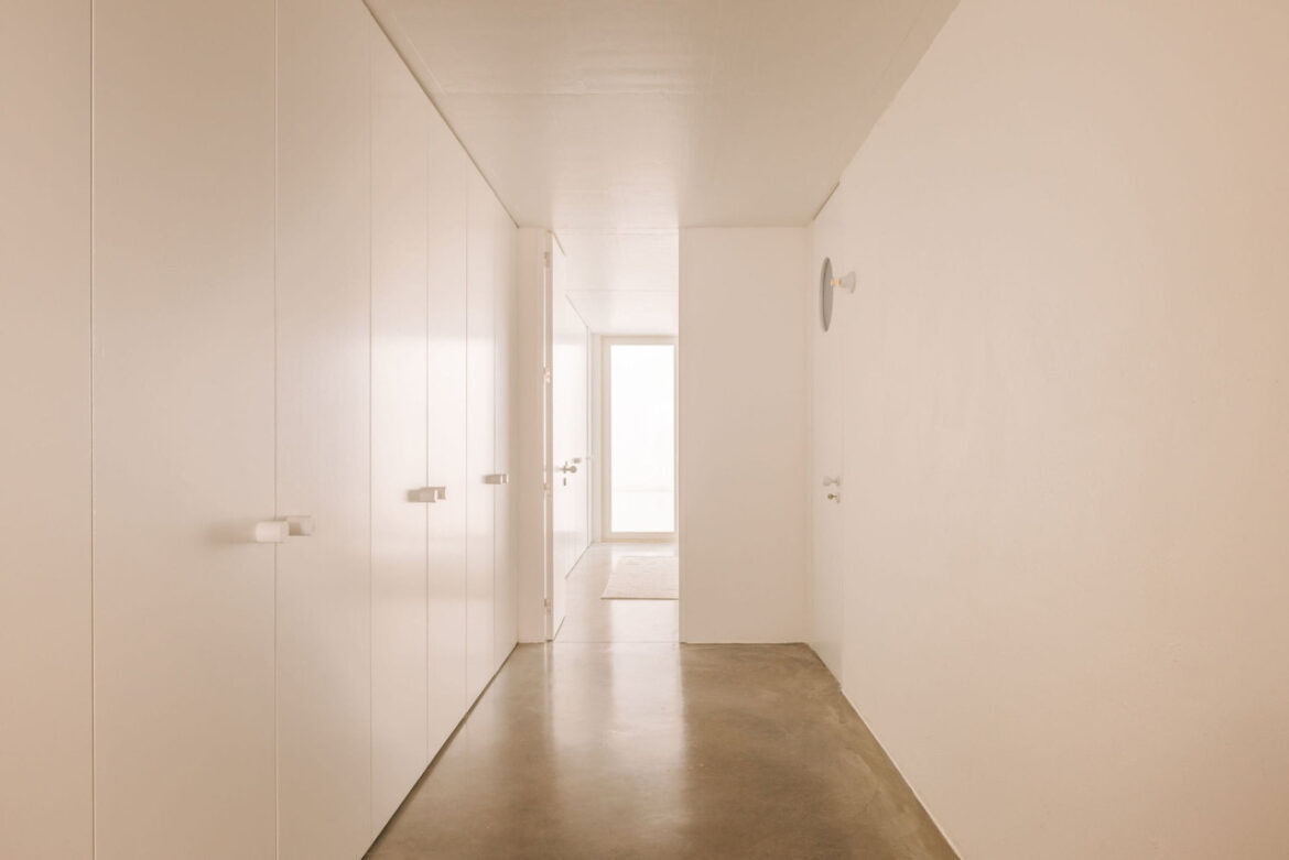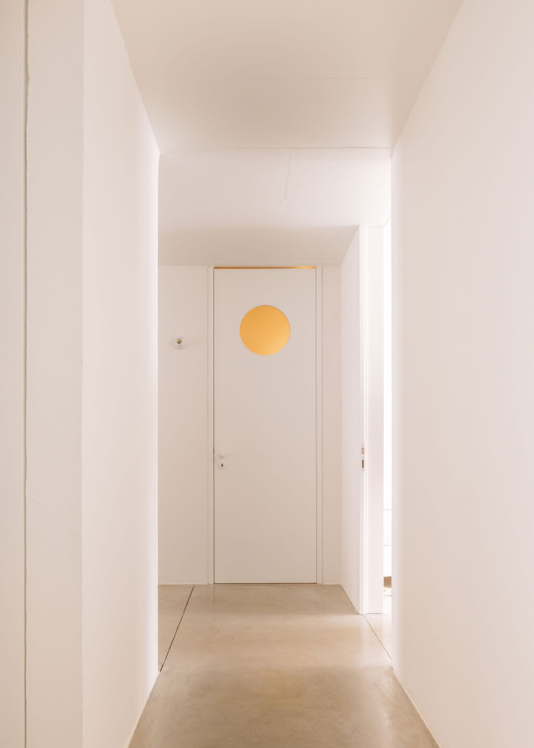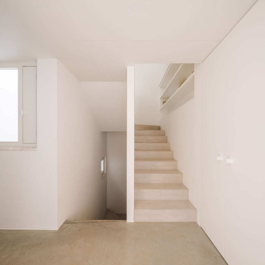 Another higher and cubic volume contains the stairs that give access to the bedroom on the upper floor and a support zone in the basement.