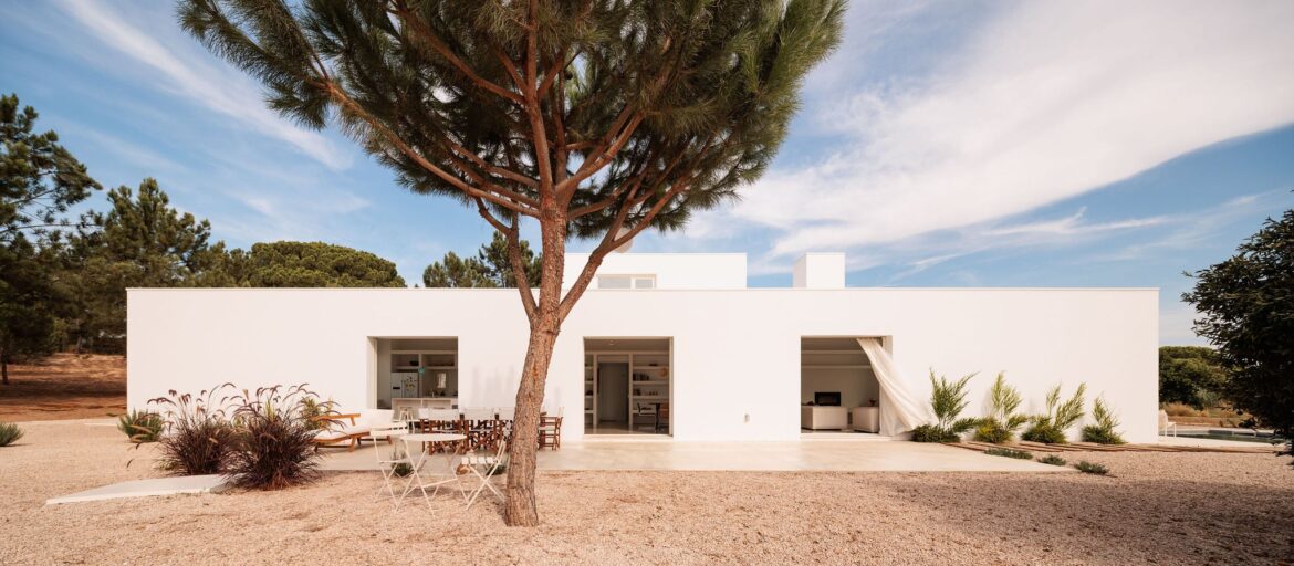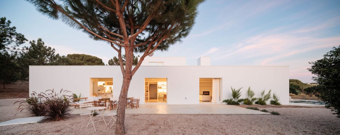 This house is located on a plain, a few kilometres inland from Portugal’s Atlantic coast. This area is sparsely populated, with scattered houses built on plots of various sizes. Originally, such properties – including this one – were intended for foresters or farmers.
