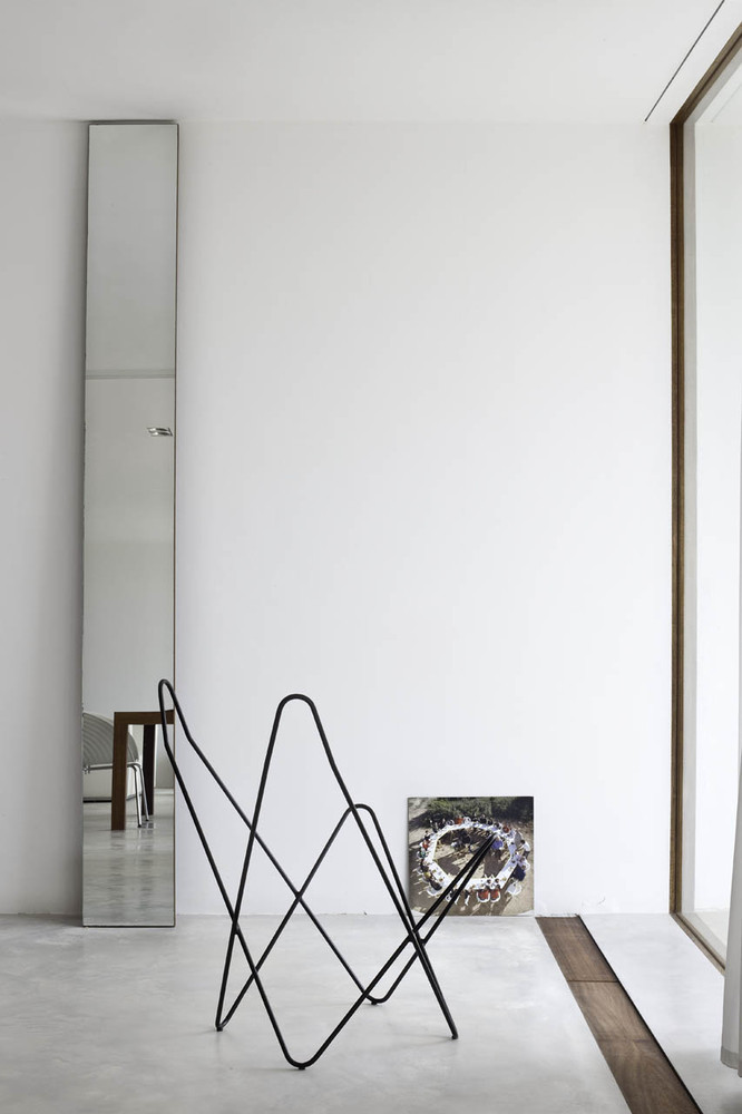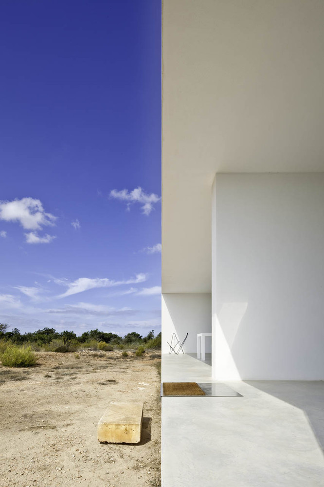 Un tradizionale muro a secco stabilisce l’allineamento nel territorio e diventa parte del prospetto nord dell’edificio, inserendolo al tempo stesso nel paesaggio. Un’antica cappella costruita su una cisterna sotterranea segna l’asse longitudinale dell’edificio ed è un riferimento costante di dialogo/tensione, sia all’esterno che all’interno. È un’architettura che ricerca il contesto attraverso il rapporto con l’ambiente circostante.