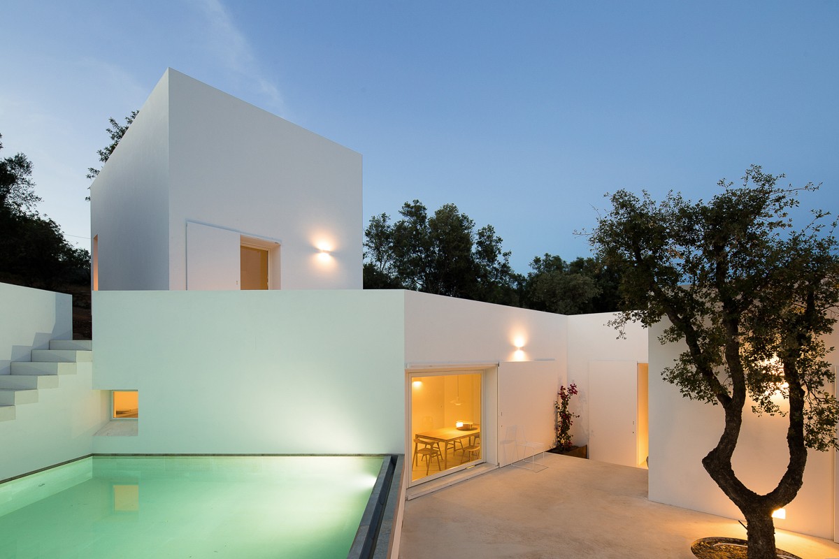 La residenza si trova nel distretto di Faro, di fronte alla valle di Agostos. Un luogo interno protetto dalla costa. Un paesaggio basato sulla tradizione mediterranea, strutturato da piccoli appezzamenti delimitati da muri in pietra, alberi, cisterne e piccole costruzioni. La casa è impiantata in questo contesto incastonata nel pendio, l’edifico è gemellato con un’altro esistente.