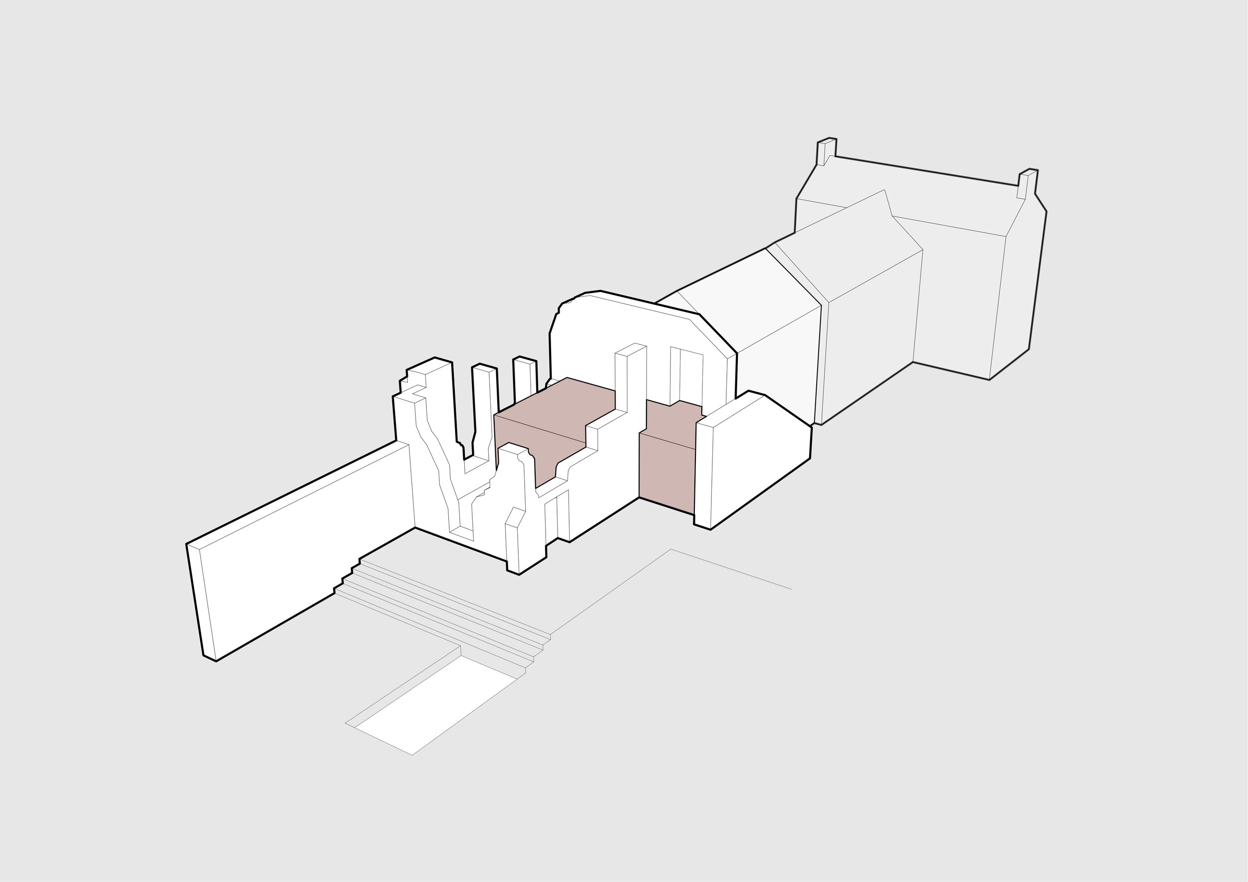 Invece di demolire la rovina, Will Gamble Architects ha proposto “un edificio all’interno di un edificio”, dove due volumi leggeri potevano essere delicatamente inseriti all’interno delle pareti in muratura per preservarlo e celebrarlo.