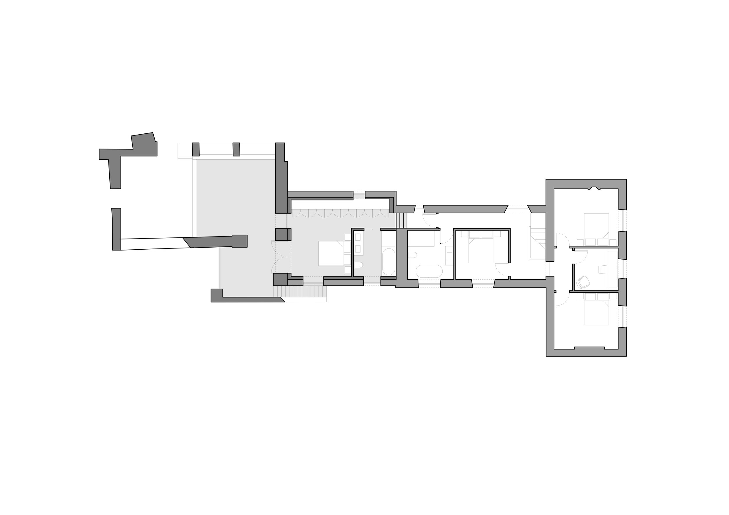 Il compito iniziale del cliente era di convertire la stalla e demolire le rovine per far posto a un nuovo ampliamento. Fin dall’inizio del processo di progettazione è stato chiaro che il cliente vedeva la rovina come un vincolo in contrapposizione a un bene positivo che poteva essere celebrato attraverso un intervento sensibile ma ben concepito.